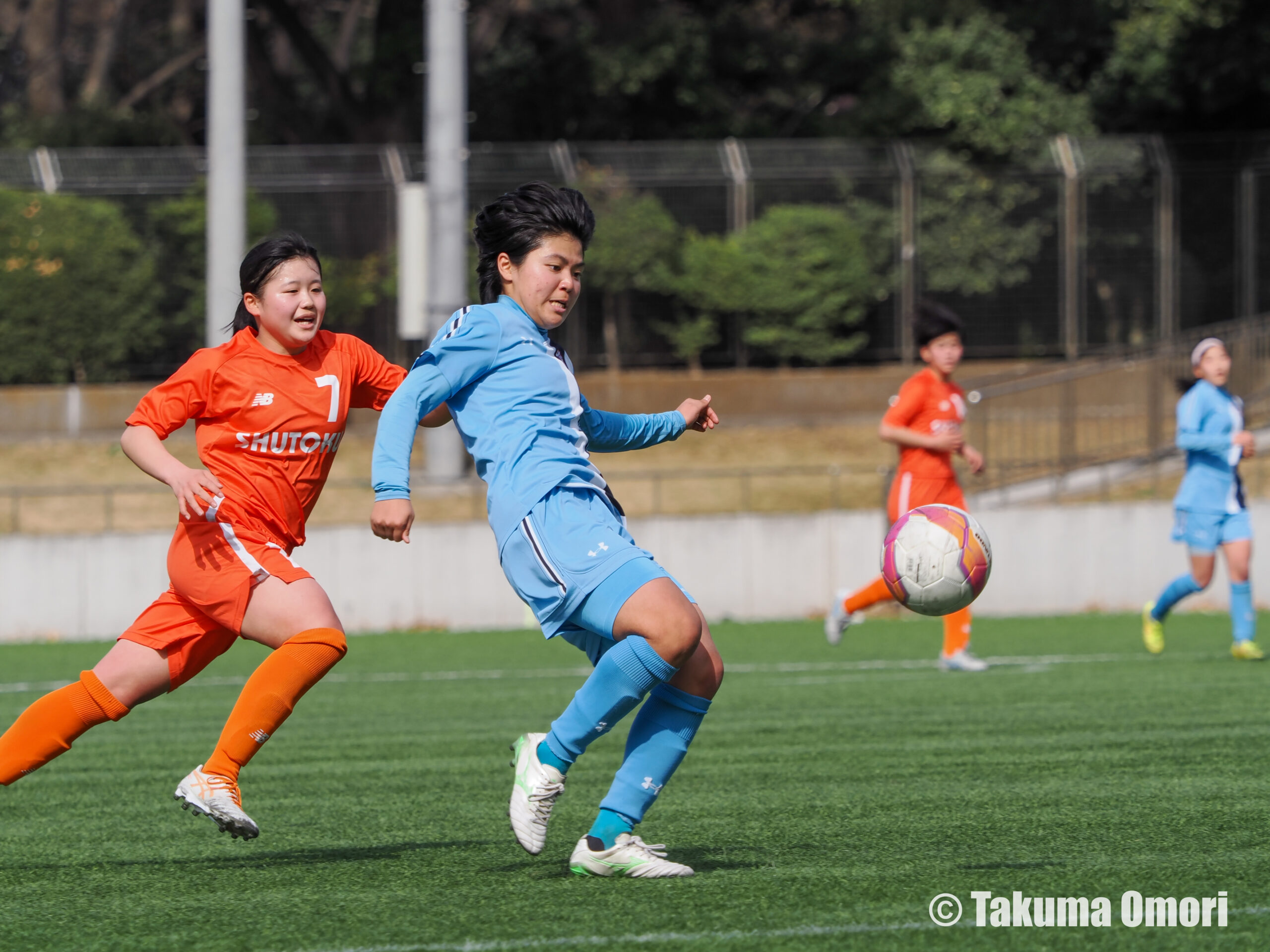 「何回かチャンスがあったのに決め切れなかった。守れていると相手に思わせてしまうから、しっかり決めていこう」。ハーフタイム中にそう話し合ったという伊藤。しかし後半は、逆に修徳の攻勢をしのぐ展開でスタートした。