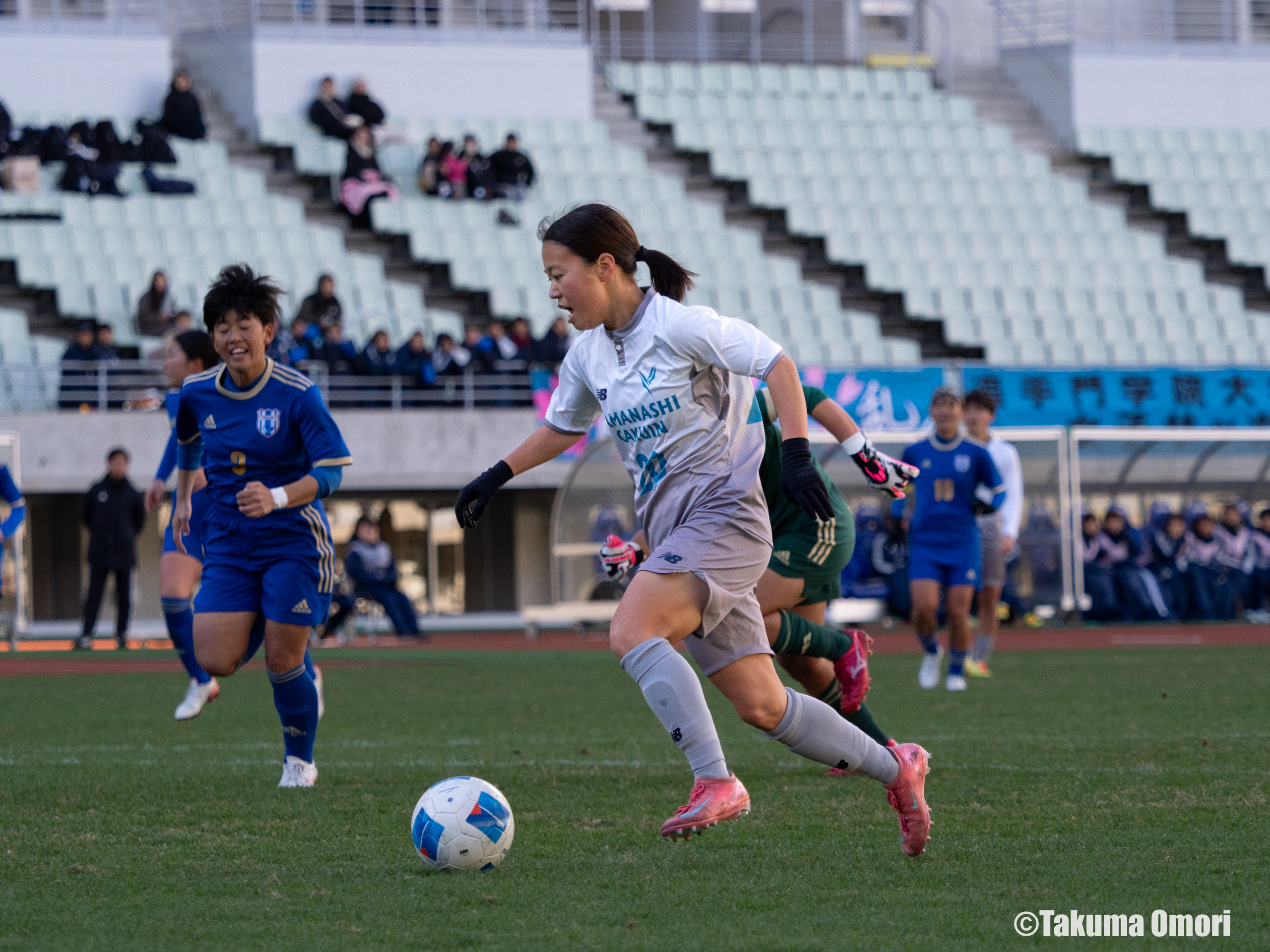 第34回全日本大学女子サッカー選手権大会は12月26日、2回戦4試合が行われた。ヤンマースタジアム長居の第2試合では、山梨学院大学(関東⑥/山梨)と追手門学院大学(関西②/大阪)が対戦した。
